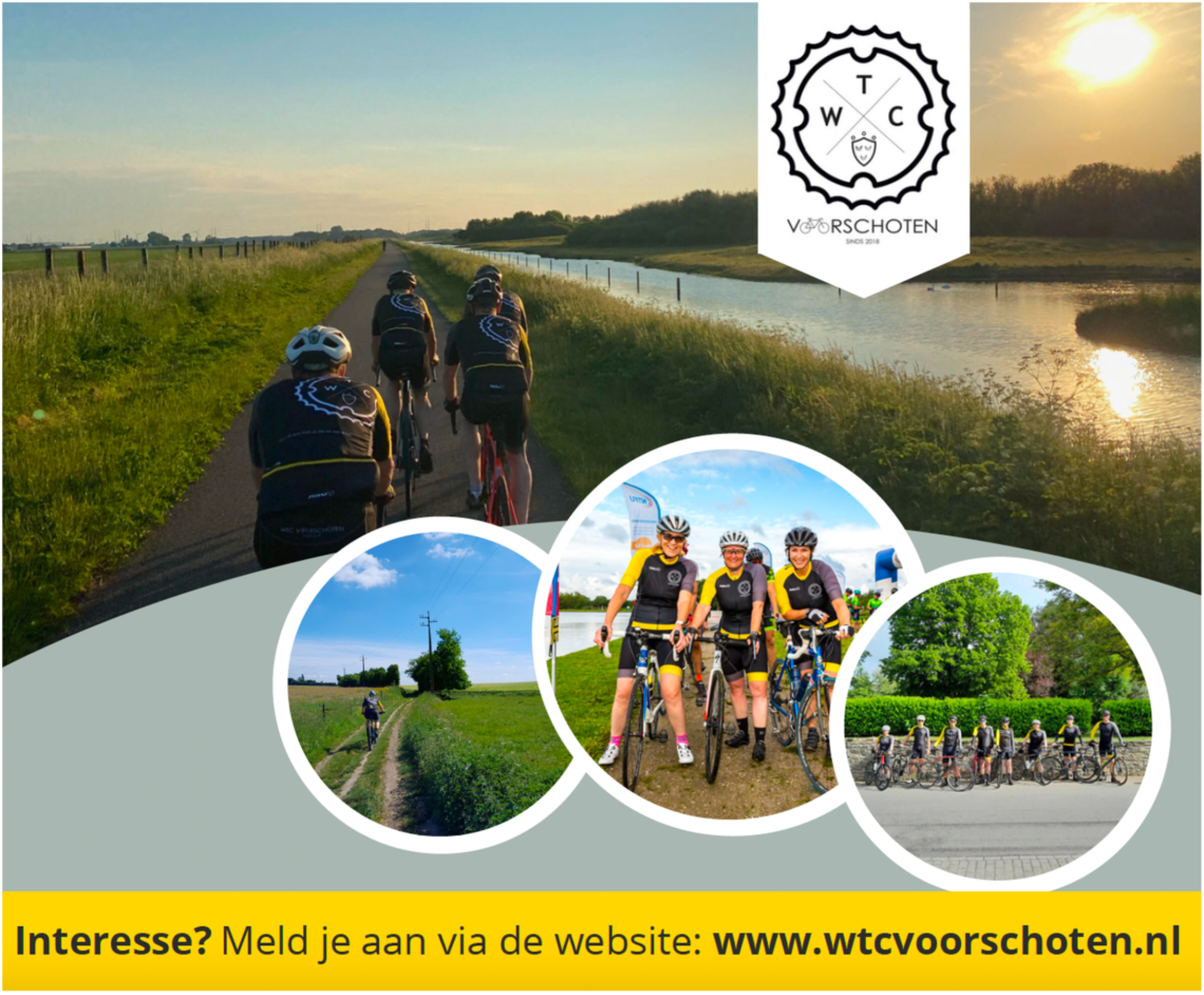 WTC Voorschoten is een gezellige en sportieve club, waar samen uit samen thuis betekent en iedereen welkom is. We verdelen de groep, afhankelijk van de opkomst, zodat iedereen zich prettig kan voelen. De gemiddelde snelheid van de groep is dan: 23-26, 26-29 en 29-33 km/h. Een speciale oproep voor de beginnende wielrenner, we zoeken jou!